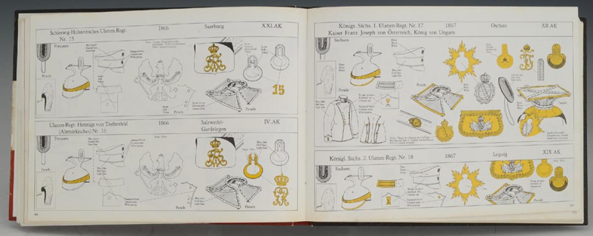 Ouvrage le plus complet existant de nos jours, il décrit et permet d'identifier instantanément une coiffure Allemande (casque, shako, mitre, colback, schapska) et précise également de nombreux détails comme la couleur de la casquette, les monogrammes, les épaulettes, les gibernes ou sabretaches.