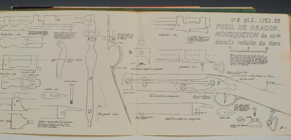 Environ 500 pages en 4 volumes reliés toile, riches de plus de 1.000 illustrations des armes à feu réglementaires de l'armée française, format 27,5 x 22 cm. L'ouvrage de référence à ce jour, où chaque modèle est largement étudié dans ses moindres détails avec de nombreux dessins fidèles.