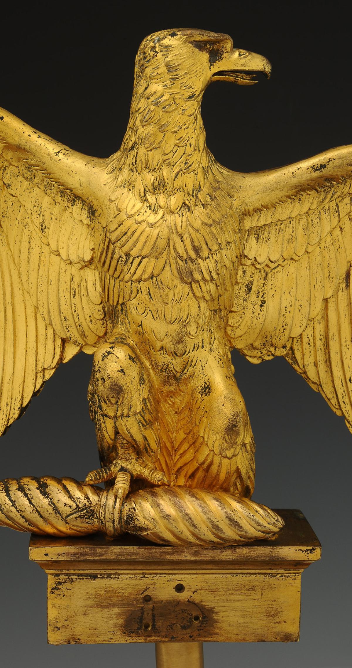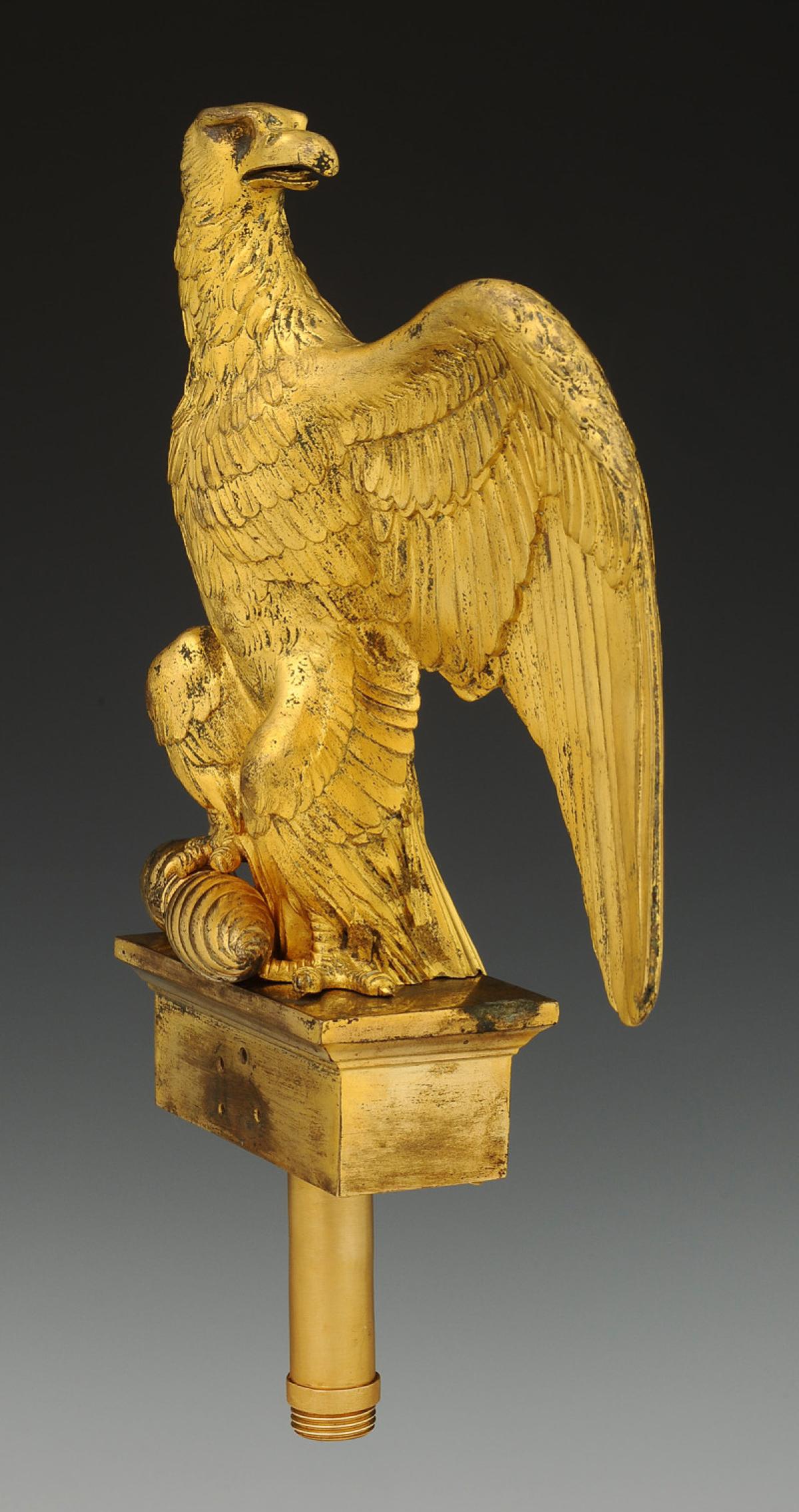 L’aigle modèle 1804 est d’une fabrication très soignée, entièrement en cuivre fondu avec reprise au ciseau. Poids total de l’aigle 1,750 kg.