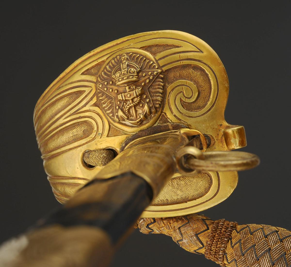 SABRE D'OFFICIER DE LA MARINE INDIENNE AYANT APPARTENU AU COMMANDER HEDLEY VICARS BANFIELD, Commandant du vaisseau HMIS LAWRENCE en 1940, Première moitié du XXème siècle. 32670